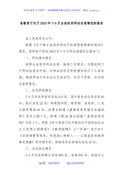 / 省教育厅关于2023年7-9月全省政府网站自查情况的报告