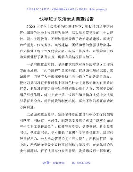 / 领导班子政治素质自查报告2700字