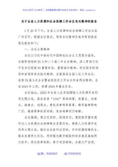 / 关于全省人力资源和社会保障工作会议有关精神的报告