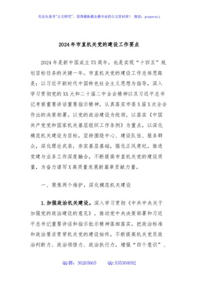 / 2024年市直机关党的建设工作要点