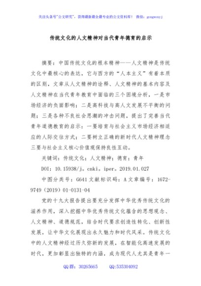 / 传统文化的人文精神对当代青年德育的启示