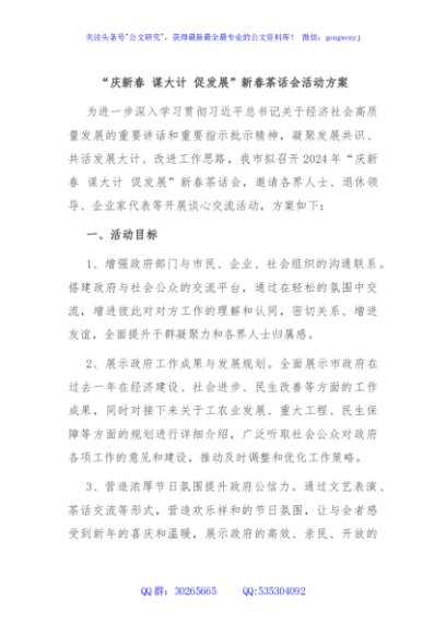 / “庆新春 谋大计 促发展”新春茶话会活动方案