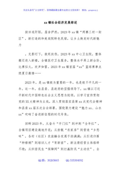 / xx镇社会经济发展综述