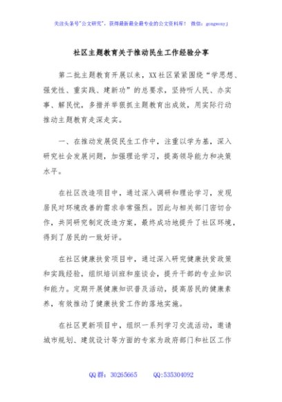 / 社区主题教育关于推动民生工作经验分享