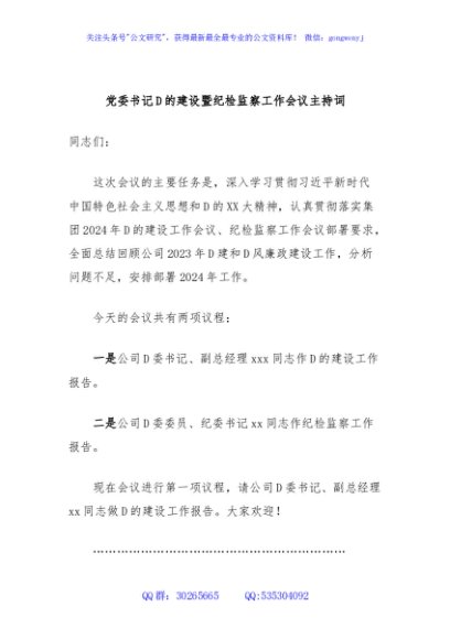 / 党委书记D的建设暨纪检监察工作会议主持词