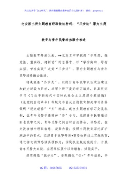 / 公安派出所主题教育经验做法材料:“三步法”聚力主题教育与青年民警培养融合推进