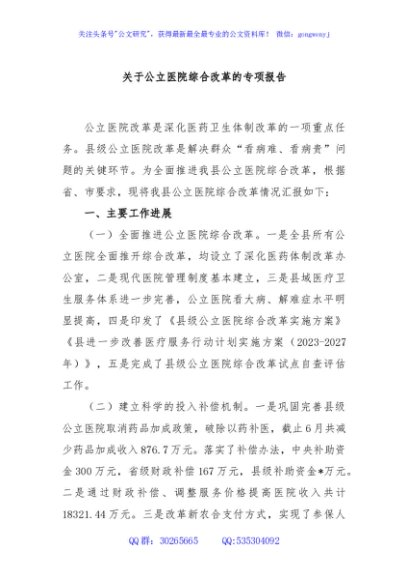 / 关于公立医院综合改革的专项报告