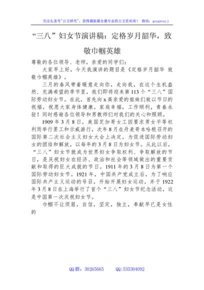 / “三八”妇女节演讲稿:定格岁月韶华,致敬巾帼英雄