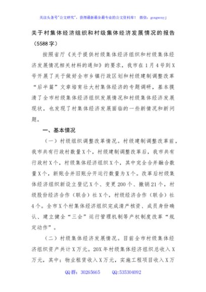 / 关于村集体经济组织和村级集体经济发展情况的报告