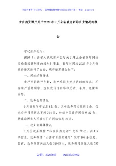 / 省自然资源厅关于2023年9月全省政府网站自查情况的报告