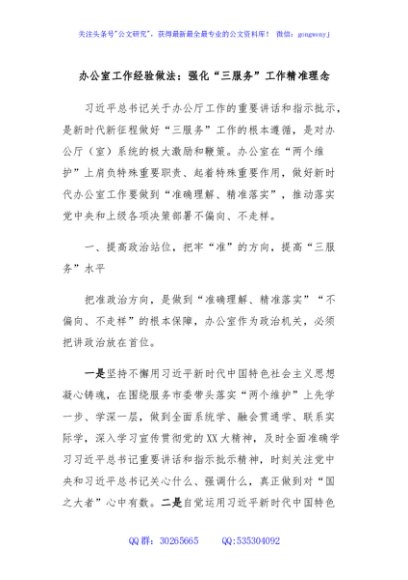 / 办公室工作经验做法:强化“三服务”工作精准理念