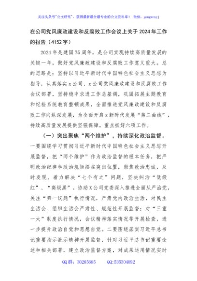 / 国企党风廉政建设和反腐败工作会议上关于2024年工作的报告