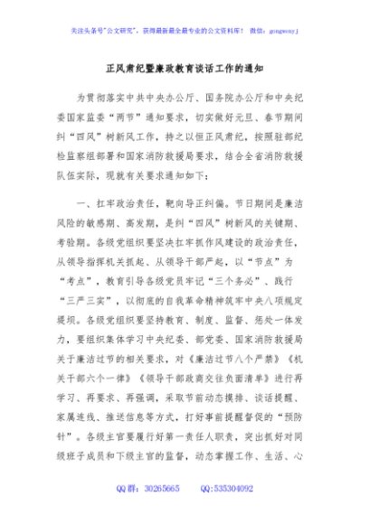 / 正风肃纪暨廉政教育谈话工作的通知