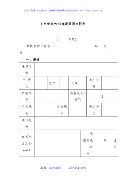 / X州智库202X年度课题申报表