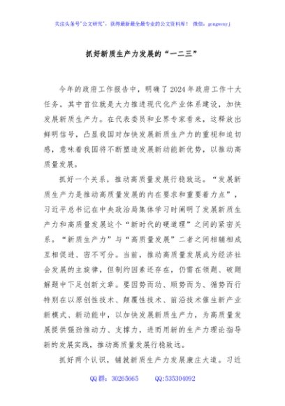 抓好新质生产力发展的“一二三”