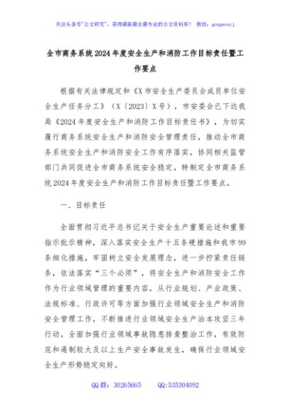 / 全市商务系统2024年度安全生产和消防工作目标责任暨工作要点