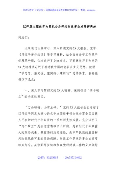 / 以开展主题教育为契机奋力开拓财政事业发展新天地