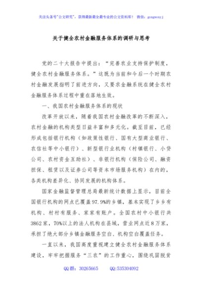 / 关于健全农村金融服务体系的调研与思考