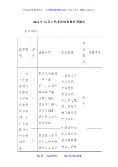 / 2024年XX国企纪委政治监督事项清单
