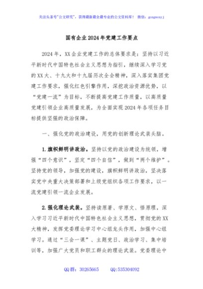 / 国有企业2024年党建工作要点