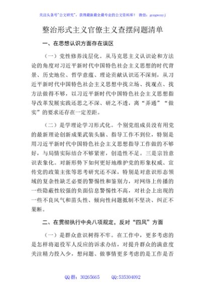/ 形式主义官僚主义问题清单