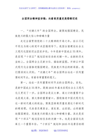 / 全国两会精神宣讲稿:向着高质量发展铿锵迈进
