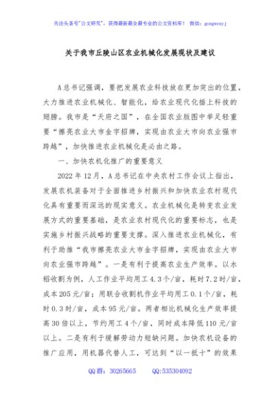 / 关于我市丘陵山区农业机械化发展现状及建议