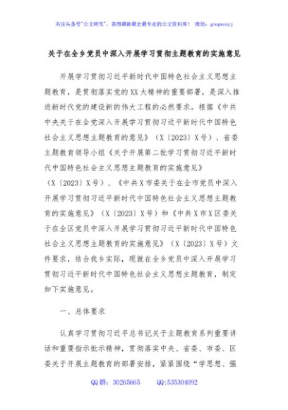 / 关于在全乡党员中深入开展学习贯彻主题教育的实施意见