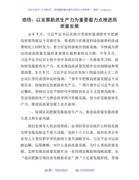 / 感悟:以发展新质生产力为重要着力点 推进高质量发展
