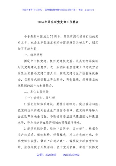 / 2024年某公司党支部工作要点