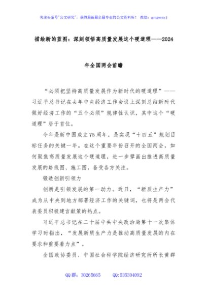 / 描绘新的蓝图:深刻领悟高质量发展这个硬道理——2024年全国两会前瞻