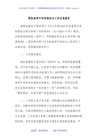 / 高校春季开学校园安全工作自查报告