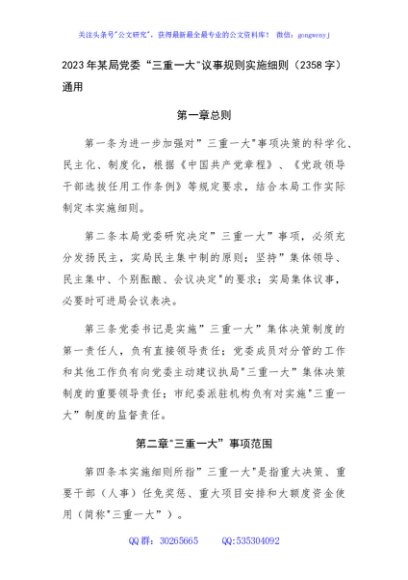 / 2023年某局党委“三重一大”议事规则实施细则通用