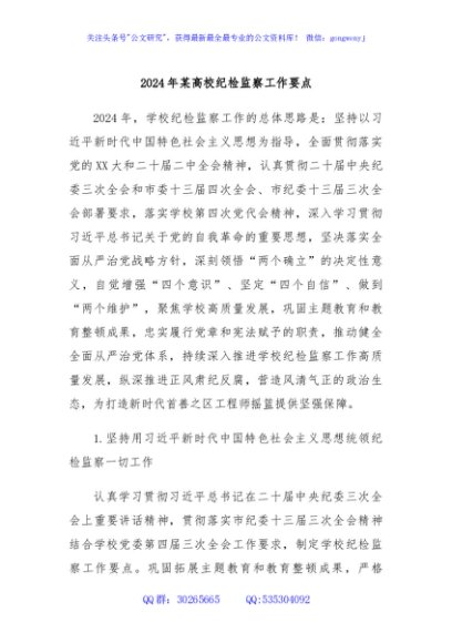 / 2024年某高校纪检监察工作要点