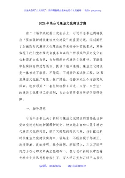 / 2024年某公司廉洁文化建设方案