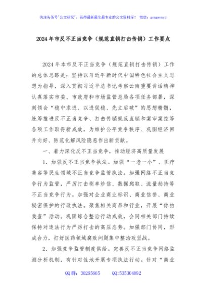 / 2024年市反不正当竞争(规范直销打击传销)工作要点