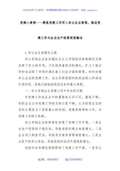 党建入章程——聚焦党建工作写入非公企业章程,推动党建工作与企业生产经营深度融合
