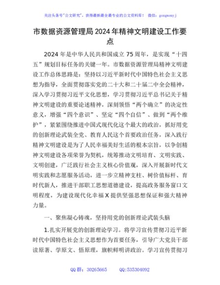 / 市数据资源管理局2024年精神文明建设工作要点