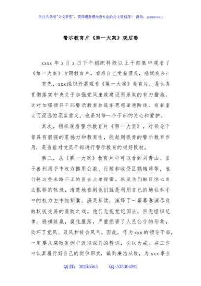 / 警示教育片《第一大案》观后感