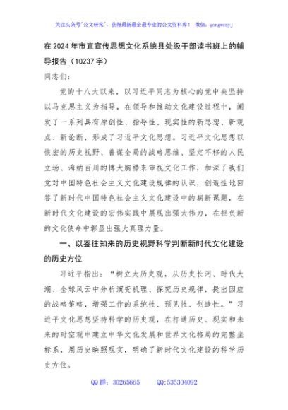 / 在2024年市直宣传思想文化系统县处级干部读书班上的辅导报告