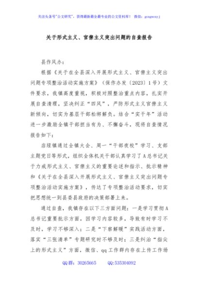 / 关于形式主义、官僚主义突出问题的自查报告