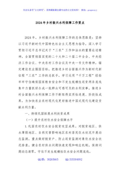 / 2024年乡村振兴水利保障工作要点