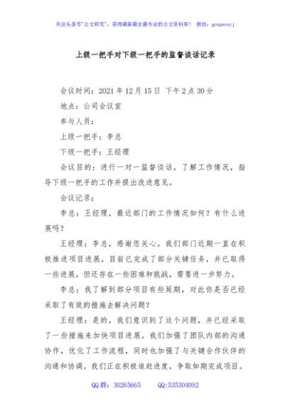 / 上级一把手对下级一把手的监督谈话记录