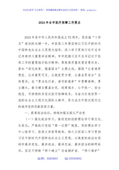 / 2024年全市医疗保障工作要点