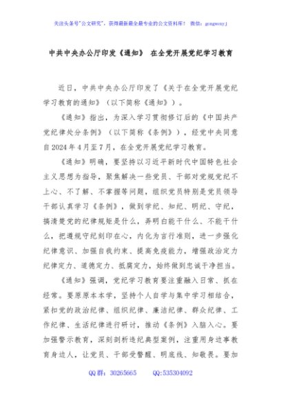 / 中共中央办公厅印发《通知》 在全党开展党纪学习教育