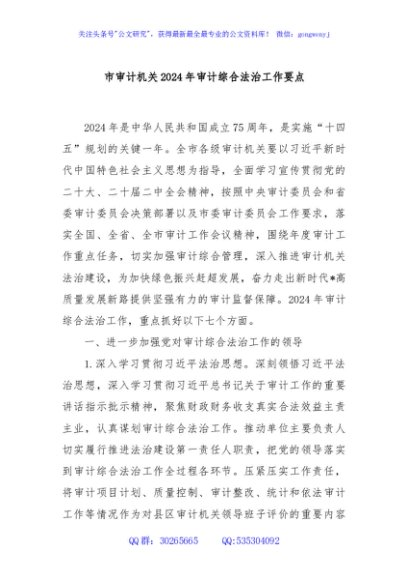 / 市审计机关2024年审计综合法治工作要点