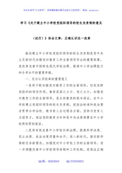 学习《关于建立中小学校党组织领导的校长负责制的意见(试行)》体会文章:正确认识这一改革