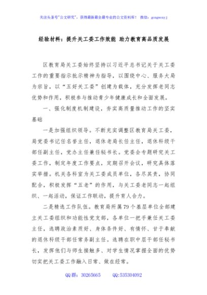 / 经验材料:提升关工委工作效能 助力教育高品质发展