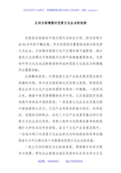 / 从四方面增强对民营文化企业的扶持