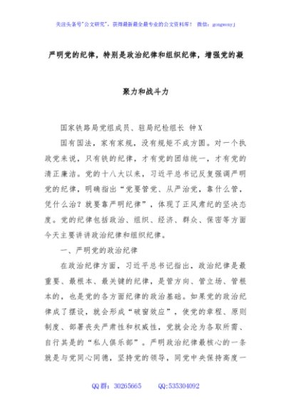 / 严明党的纪律,特别是政治纪律和组织纪律,增强党的凝聚力和战斗力